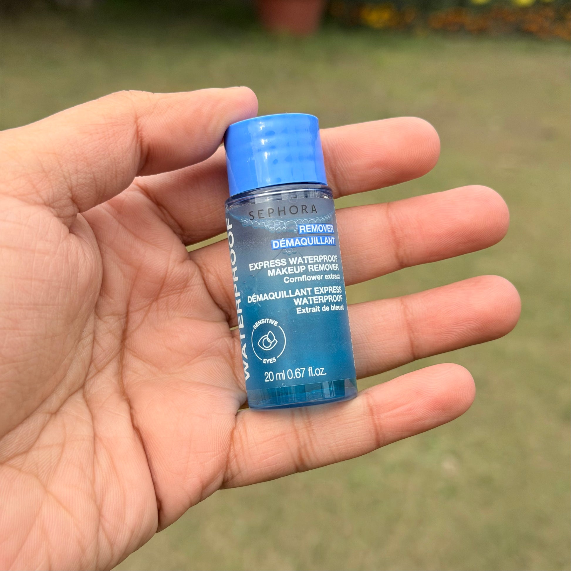 A waterproof eye makeup remover suitable for contact lens wearers and those with sensitive eyes.